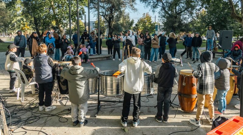 El domingo por la tarde, en el marco de la agenda cultural y recreativa que se desarrolla en distintos puntos de la ciudad, “Lincoln Suena” presentó al Laboratorio Experimental de Percusión Fusta, con su propuesta de ritmo con señas, en la plaza Sarmiento.